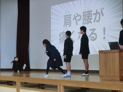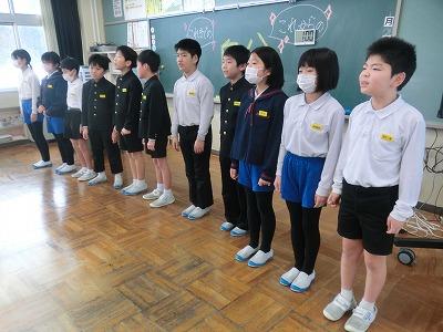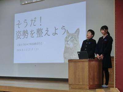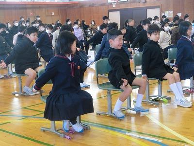本日、今年度最後の授業参観でした。多くの保護者の方々に来校していただき、誠にありがとうございました。授業参観に続いて、学校保健委員会を体育館で行いました。今年度のテーマは「そうだ!姿勢を整えよう」でした。健康委員会の劇の後、ジムのトレーナーをしている元女侑紀先生を講師としてお招きし、姿勢をよくすることの良さと簡単な体操についてお話していただき、実際に動いてみました。とても興味深い内容で、ぜひご家庭でも実践してほしいと思いました。その後、来年度から開設される複式学級についての説明があり、最後に学年ごとに学級懇談会を行いました。