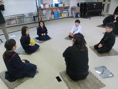 本日、西田幾多郎記念哲学館の方々にご来校いただき、今年度2回目の「哲学対話」を行いました。低学年は、「きょうだいはおおいほうがいい?」「なぜこどもはおこられるの?」「おとなはあそんだらだめ?」について、高学年は「流行にのったほうがいいのか?」「勉強は必要か?」「将来の夢は持った方がいいのか?」について、自分たちでテーマを選んで考えました。1学期と比べてさらに話し方が上手になっていました。また、とても自然な雰囲気で話し合っている様子が見られ、すごく温かい気持ちになりました。