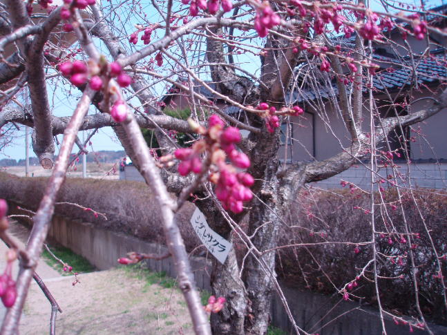 ここ数日の穏やかな日に誘われて、しだれ桜が急につぼみがふくらんできました。学校の運動場にはソメイヨシノがずらっと並んで見事ですが、しだれ桜もすっきりとした赤色で、目に鮮やかに飛び込んできます。あと1,2日で花が咲くでしょう。新1年生を待っているかのように、咲く時期をあわせています。春の訪れ。と同時に、学校も平成25年度を迎えます。今年も皆さんよろしくお願いします。