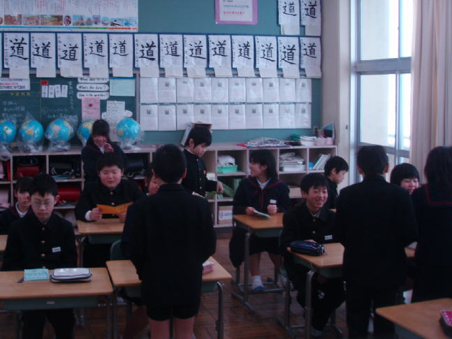 朝の会の数分の時間をいただいて、4年生が書いた「6年生を送る会」の招待状を卒業生に届けました。4年生から直接手渡された6年生はちょっと照れ気味でしたが、大変嬉しそうでした。