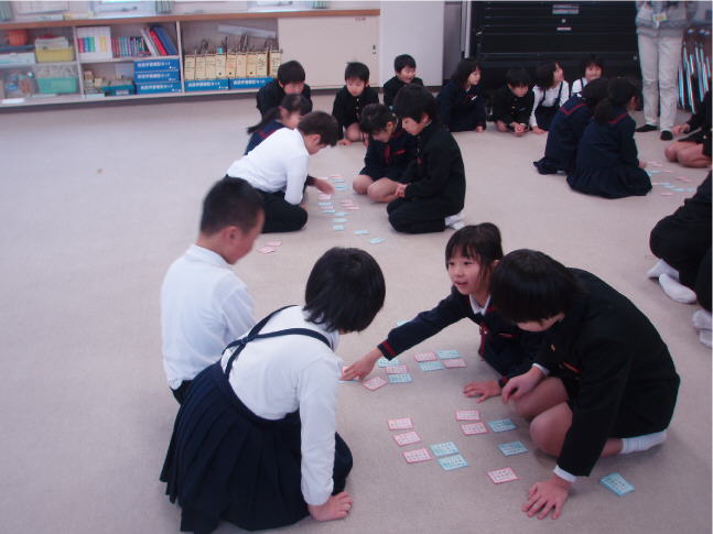 大海小学校伝統の「百人一首大会」がありました。今日は、低学年の児童が、会議室で4人1組になって行いました。冬休みに宿題にしていたので、どの児童も上の句を詠んだだけで反応していました。中には、上の句の2,3文字を詠んだだけで札を取る大人顔負けの子もいます。今週中に中学年と高学年の大会をして、優勝を決めます。なお、この大会で優勝すると、大海っこを育てる会で表彰されます。
