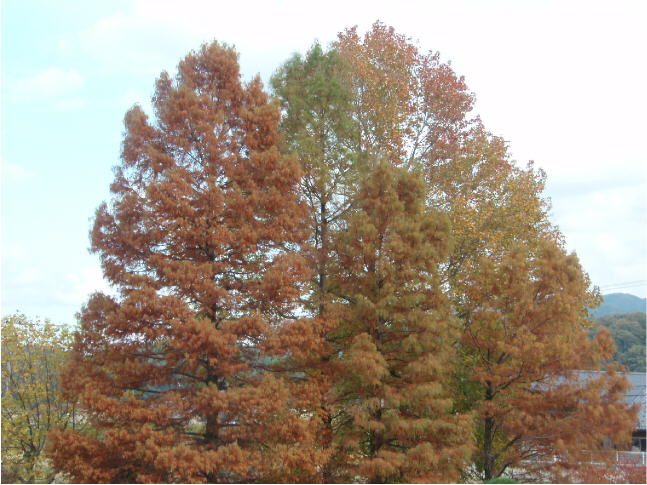 学校の周りには、桜、楓、梅などの落葉樹がたくさんあります。今日、お客さんが見えられて前庭のアメリカフウを見て、紅葉しているのか害虫で木が腐ってきているのか尋ねられました。もちろん、紅葉です。