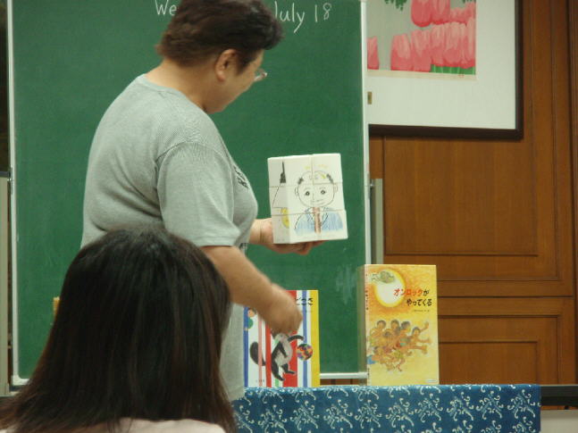 さて、今日のお話は、「オンロックがやってくる」「じんべえざめ」でした。高学年向きと低学年向きの2冊の本を持ってきてくれました。前もって準備して来てくれていることに感謝しています。