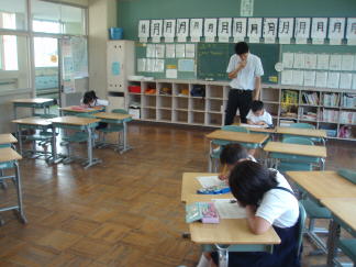 午前9時から各教室でサマースクールが始まりました。今までの学習で苦手のところを担任や他の先生と一緒になって学習しています。主に、計算や漢字の正しい書き方を学んでいます。普通の登校日と違って、集中的にできるので、効果があるようです。
