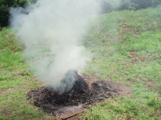 6年生は、西山遺跡で野焼=土器づくりを行いました。暑い上に古代の火起こし体験。
