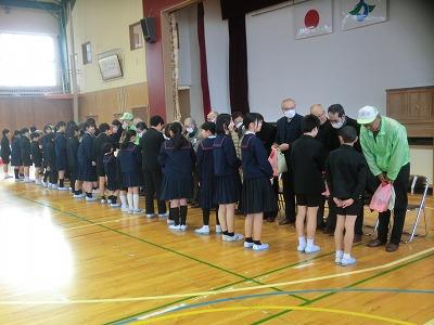 大海っ子が日頃お世話になっている方々に、感謝の気持ちを込めて、「ありがとうの会」を行いました。今年度は4年ぶりに体育館で、お世話になっている方々をお招きして、メッセージカードやお花、お米、大海味噌を渡しました。企画運営委員の司会進行のもと行いました。全校児童で歌った「キセキ」がとても素敵で感動しました。きっと感謝の気持ちが伝わったと思います。地域の皆様には、これからも大海小学校の児童のためにご協力、ご支援いただきますよう、よろしくお願いいたします。