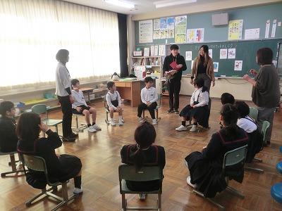 本日、ALTのグレース先生が来校されて、1,2年生と外国語活動、6年生と外国語の授業を行いました。1,2年生とは「クリスマスバスケット」のゲームをした後、グレース先生からアメリカのクリスマスのお話を聞きました。6年生とは、6年生が考えたオリジナル給食のプレゼンをグレース先生にわかるように発表しました。その後、グレース先生からはアメリカの学校の「ランチ」のお話を聞きました。