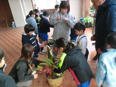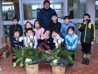 今年もあと2週間です。それで、1,2年生は、道原さんといっしょに門松づくりを行いました。最初に門松の意味を教えて頂いてから、みんなのところに「福が来ますように」と願いを込めながら作りました。