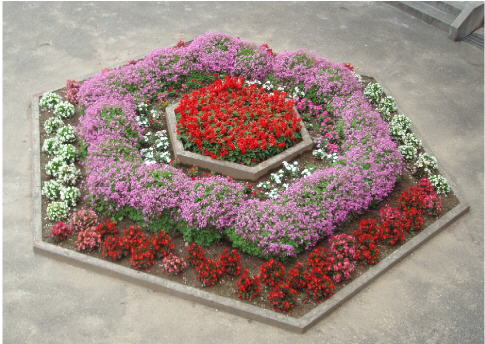 4月下旬に植えた苗が今、花盛りです。ニチニチソウ、サルビア、ベコニアなどどの学校に行ってもある花ですが、学務員さんがいつも世話をしているのでとてもきれいです。また、玄関前は、去年学校林を伐採した木でプランター置きを作り、その中に花を植えてあるのでとてもよい感じがします。とりあえず、運動場側花壇の画像を載せます。