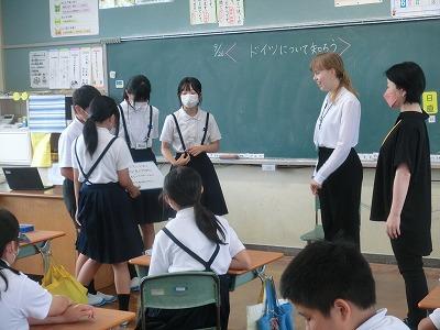 本日、かほく市の国際交流員のラーラ先生が来校され、6年生にドイツのことをいろいろ教えてくれました。とても上手に日本語を話すので、子どもたちにとってわかりやすかったと思います。いろいろお話を聞いた後、子どもたちがあらかじめ用意していた質問をしていきました。とても丁寧に答えてくれ、ドイツについて知る良い機会となりました。