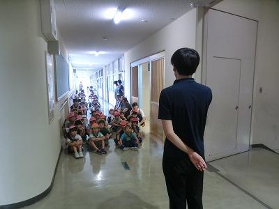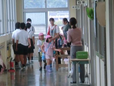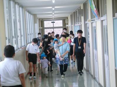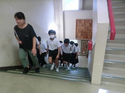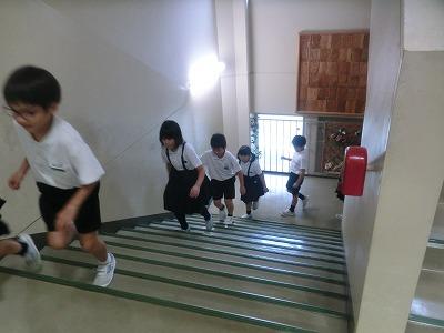 本日、大海川が大雨により氾濫したという想定で、大海こども園と合同で水害避難訓練を行いました。大海こども園の園児たちは外階段と正面玄関の2か所から入って、3階に上がり、大海小の1~4年生はそれぞれの教室から3階に上がってきました。そして、6年生は園児の誘導を行いました。学校にいるときはこのように避難しますが、7月の大雨の時のように、家にいる時、洪水の危険性が高まったらどう行動するのか、家の人とよく確認しておいてほしいと思います。
