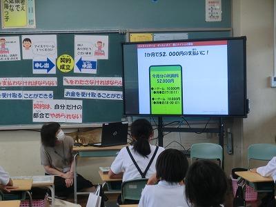 本日、5,6限目に5年生が家庭科の授業で「物やお金の使い方」について学習しました。講師としてかほく市消費生活センターの方々をお招きして「よりよい消費者になろう」のテーマでお話していただきました。最初にオンラインゲームの課金について考えました。次にSDGsの視点で消費について考えました。子どもたちはとても良い反応で、それぞれ真剣に考えていました。実際の生活につながることを期待しています。