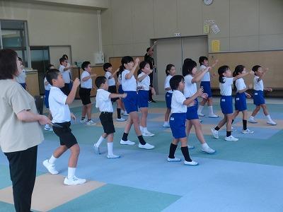 今週から応援練習も本格的になってきました。朝から全校児童が赤組(プレイルーム)、白組(体育館)に分かれて練習しました。今日は「コール」の練習で、みんなで大きな声を出しました。初めての練習でしたが、とてもよく声が出ていたと感じました。この調子で、練習から本番のように頑張っていってほしいと思います。