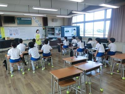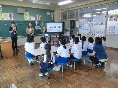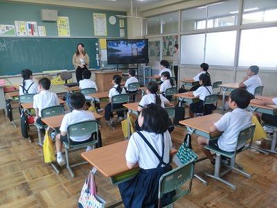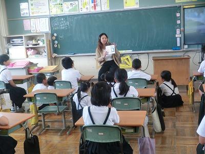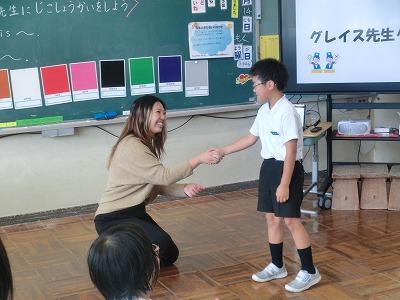 ☆朝自習(3年)・1限(1,2年) 朝自習ではALTのグレース先生が3年生に絵本の読み聞かせをしてくれました。そして、1限目には1,2年生と外国語活動をしました。グレース先生は本日が本校初めての授業でした。これからよろしくお願いします。