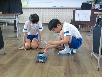☆今日は、PFUの方々のご協力のもと、4年生と6年生がプログラミング学習に取り組みました。4年生は3,4限目にロボットを動かすことに取り組みました。簡単なプログラミングで動かすのですが、ちゃんと指示通りに動くと子どもたちは大喜びしていました。6年生も5,6限目にロボットを動かすことに挑戦しました。本格的なプログラミングで、センサーを活用してロボットを動かしたり、止めたりしました。ちゃんと壁の手前で止まると「おぉーっ」と歓声がしました。