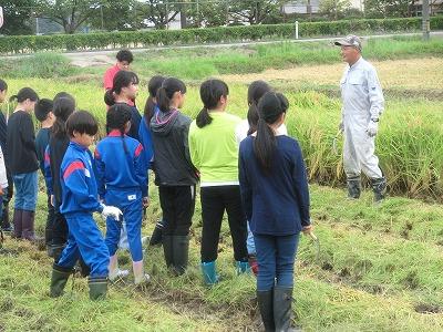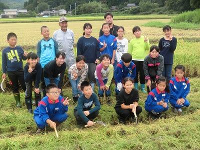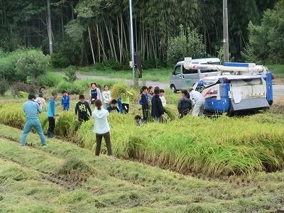 本日、5年生が稲刈り体験をしました。春に田植えの体験をしましたが、あれから4か月がたち、立派に育ちました。東さんをはじめ、中沼生産組合の方々のご指導の下、上手に稲刈りをしました。とても貴重な体験になりました。