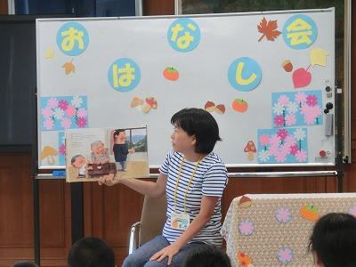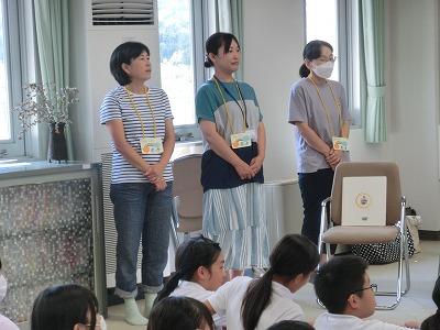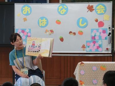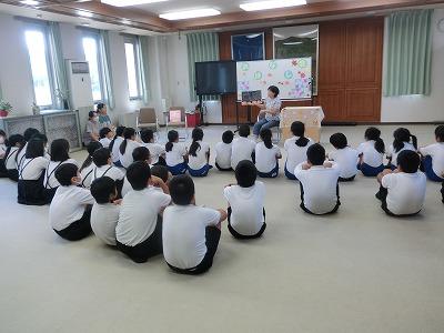 本日、昼休みに「ひみつのポッケ」さんによるお話会がありました。5~6年生の子どもたちが集まりました。今回は「みそすり地蔵」「ぼんやきゅう(盆野球)」という絵本を読んでいただきました。最後には、うさぎの折り紙をもらって、みんな笑顔でした。
