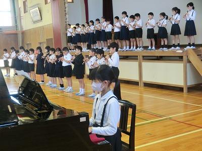 本日5限目に、5,6年生が市の音楽会に向けて合同練習を行いました。今年度は2曲、「ビギナーズ・ビギン」と「ソーラン節」を演奏します。また、今年度も畑山先生を講師にお招きして指導していただきます。本番は、6月13日(火)河北台中学校講堂で行われます。久しぶりに市内小学校6校が集まって行われますが、保護者は入場できません。保護者向けには、翌日14日の授業参観の日にご披露する予定です。