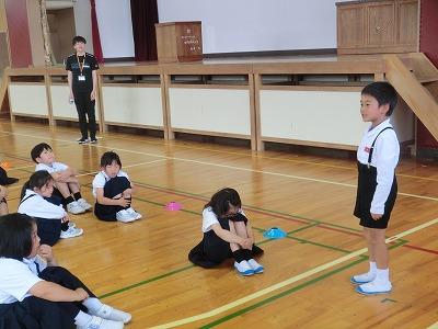 ☆全校集会に続いて、話し方大会のリハーサルを行いました。身振り手振りを入れて、とても上手に話していました。