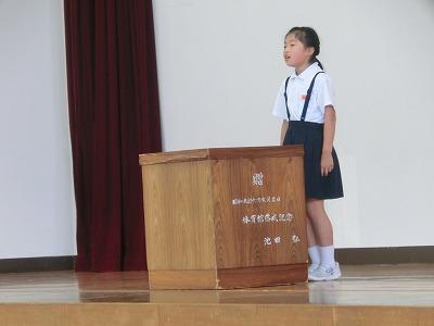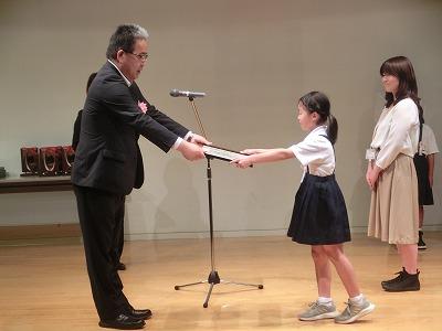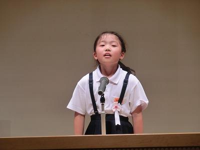 本日、石川県学童話し方大会が西田幾多郎記念哲学館で開催されました。本校からは3年生の金田さんが代表として出場しました。「1年げんてい、わたしのお姉ちゃん」という題で、2学年上のいとこがお母さんの出産里帰りで1年間だけ一緒に暮らすことになった経験とその時の思いをとても上手にお話しました。そして、最優秀賞を受賞しました。多くの人たちが見ている前で話すのは、とても緊張したと思います。頑張りました!そして、おめでとう!!