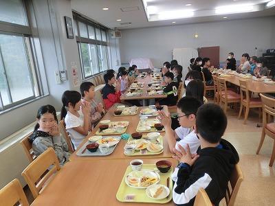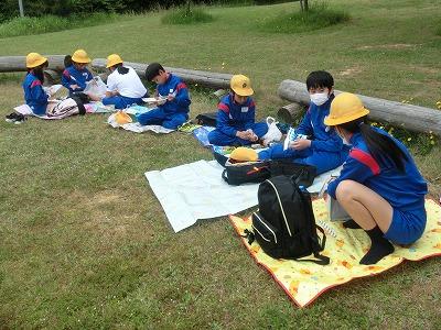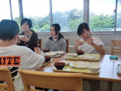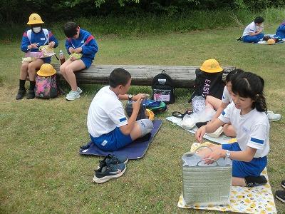 国立能登青少年交流の家に到着すると、まず、入所式を行いました。そして、昼食をとりました。晴れていたので、外で食べました。お家の人が作ってくれたお弁当をおいしくいただきました。