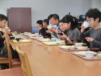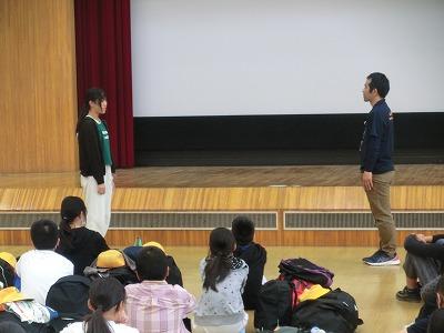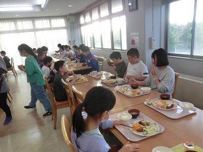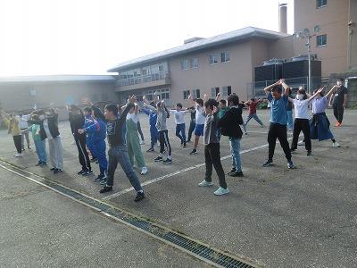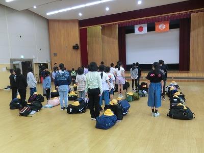 宿泊体験学習2日目。朝のフレッシュタイムからスタートです。富山県の中学校と津幡の英田小学校、昨日も一緒だった日本語学校と4団体で行いました。その後、朝食をとり、2日目の活動に入りました。