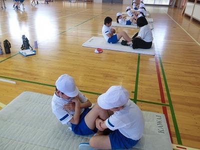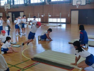 本日、3~6年生が体力テストを行いました。反復横跳び、上体起こし、立ち幅跳び、ソフトボール投げの各種目に挑戦しました。他にも握力や長座体前屈、シャトルラン、50m走がありますが、これらの種目は体育の時間に実施します。各自いい記録を出そうと、一生懸命に取り組んでいました。やや運動不足かなと感じさせる子もいました。今のうちから体を動かす習慣をつけておいてほしいと思います。