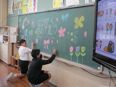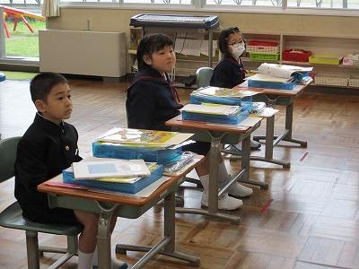 入学式を明日に控え、最高学年になった6年生が入学式準備のために登校してくれました。久しぶりに見る子どもたちの顔は、どの子もやる気満々の表情、頼もしいかぎりです。一足先に新学期がスタートしました。