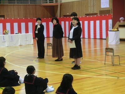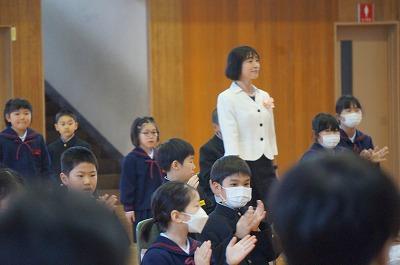 修了式に引き続き、離任式を行いました。先日、卒業生とお別れしたばかりで、今度はお世話になった先生方とのお別れです。子どもたちにとっても先生方にとってもさみしい気持ちになる式でしたが、最後は元気よく校歌を歌ってお別れしました。卒業生もたくさん来てくれて、とても心が温かくなる大海小らしい離任式でした。