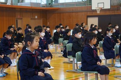 今日は、今年度最後の授業日です。5限目に修了式を行いました。校歌を歌い、校長先生のお話、西先生からの学習の話と続きました。そして、今年度最後の生活目標の振り返りをしました。どの子もとてもりっぱに振り返りを言えていました。この一年の成長が感じられました。そして、最後に春休みの生活について川井先生から話があり、修了式が終わりました。
