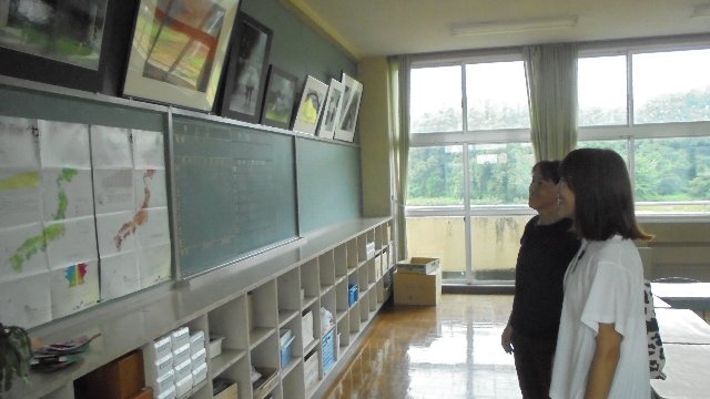 池田学校支援コーディネーターと尾小山地域支援コーディネーターが何か見ています。大海小学校に新しい名所です。まだ仕上がっていない?ので、今度くわしくお知らせします。できたら見においで下さいね。
