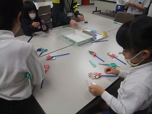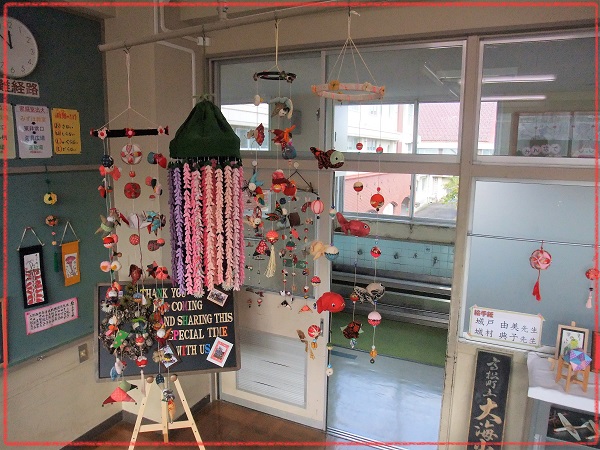 交流コーナーにお正月らしい吊るし飾りがはいりました。