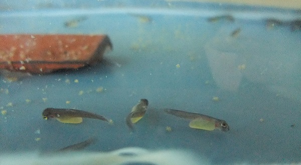学校では4年生の育てているサクラマスが魚らしい黒っぽい色になりました。