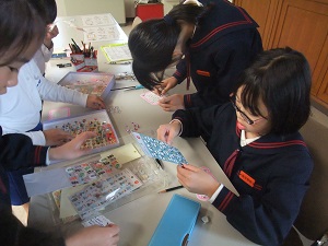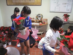 全校でメッセージカード作り、ポインセチアの鉢植えをラッピングなど