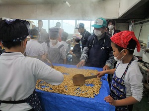 甘い香りがしてくるころ、いよいよ味噌づくり開始です。