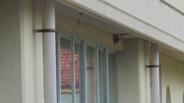 校舎の軒先に巣を作っているツバメのヒナが元気に育っています。
