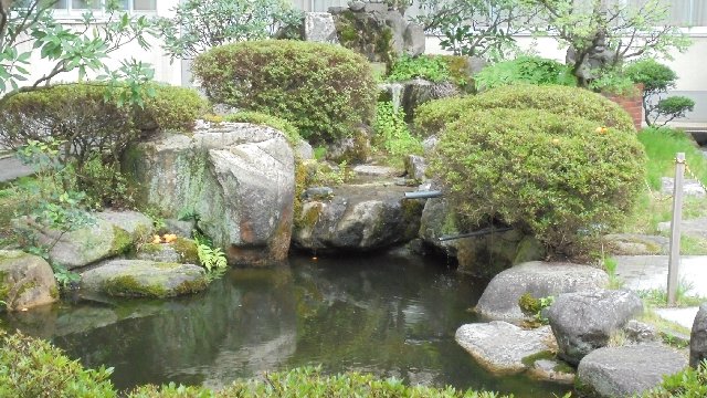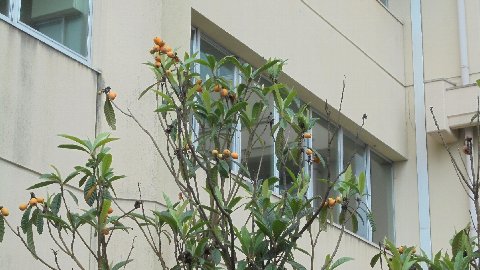 池のわきに植えられているびわの実が大きくなってきました。剪定をしたので例年より大きな実になっています。高くて取れません、池につきでているのでなおさらのことです。熟すと池の中へポチャンと・・・。国語の「やまなし」の話みたいです。(笑)