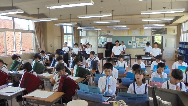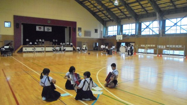 これまで音楽室で練習をしていましたが、昨日から体育館練習になりました。思う存分大きな音を出して練習して下さい。