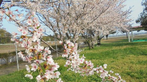 今日もこの桜を見ながら運動場では体育の授業の元気なこえがきこえています。