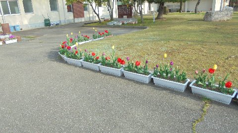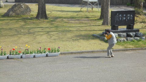 暖かい日が続きます。前庭に「人権の花」で植えたチューリップが咲きそろいました。それに合わせるかのようにカメラマンが現れました。学校運営協議会の城村先生です。大海小学校のいろいろな風景を写真に撮って下さいました。今度は子ども達の生き生きとした表情をとっていただきます。できあがったら校内で個展を開きましょう。(笑)