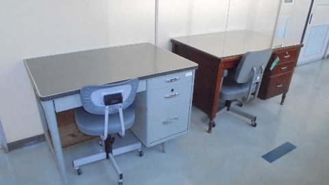 職員室の前に事務用机が二人分運ばれています。一つは七塚小から譲り受けたもの。もう一つは林PTA会長さん宅からいただいたもの。林会長には搬入のお手伝いもしていただきました。ありがとうございました。