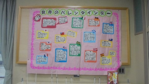 図書室の掲示 世界のバレンタインデー