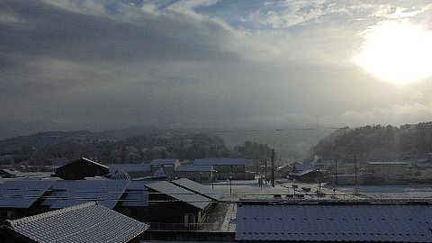 宝達山は厚い雲に隠れていますが、朝陽が気持ちよく顔を出しています。さて、今日の子どもたちの登校状況は、インフルエンザ1名と病欠1名です。早く良くなって下さいね。