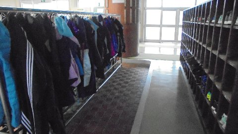 さぁ、あしたもみんな元気に登校してくださいね。写真は、全校児童きちんとせいとんされた玄関の様子です。お休みの下足箱が一つもありませんでした。