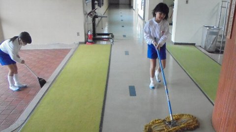 話題がもうひとつ。ワックス塗りをしました。学校中ピカピカでそうじをしても楽しいです。いつまでも美しい大海小学校にしましょうね。