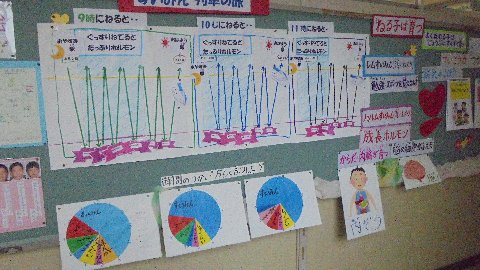 先週は、学校保健委員会が開催されました。今回のテーマは早寝でしたね。いま、保健室前は、「睡眠と成長ホルモン」など分かりやすい掲示がされています。