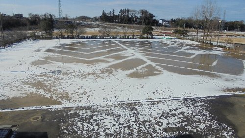 一つ目は突如現れた謎の模様。飛行機の滑走路でしょうか、それとも鳥が翼を広げた絵でしょうか?誰がいつの間にこんな絵をこの広い運動場に作ったのでしょう・・・ミステリィサークルですね。