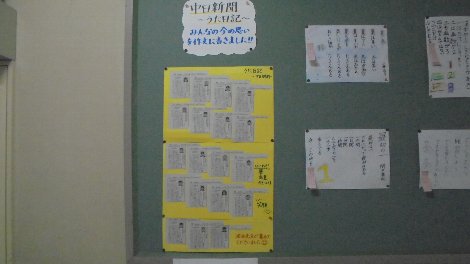 今、大海小学校の子どもたちのミニ作文が新聞に連載されています。4年生の作品から始まり、年をまたぎ現在は5年生の作文も終わり、6年生の作品が毎日一人ずつ出ています。写真付きですよ。どんなことが書いてあるのでしょうね。4年生と5年生の分は廊下に掲示したので、授業参観時にご覧下さい。