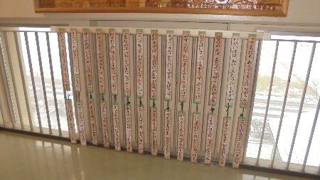 校内にはご覧のように「百人一首」が書かれた立派な木製の掲示がされています。