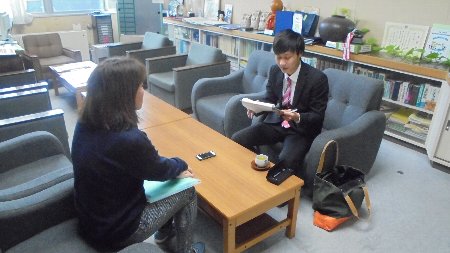 卒業生が卒業論文の取材に訪れました。